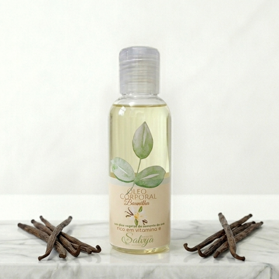 Óleo Corporal Baunilha com Óleo Vegetal de Semente de Uva rico em vitamina E 120ml SALVYA
